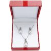 - Approx. length of pendant necklace: 18″. Approx. drop of pendant necklace: 3/4″. Approx. drop of stud earrings: 3/4″.